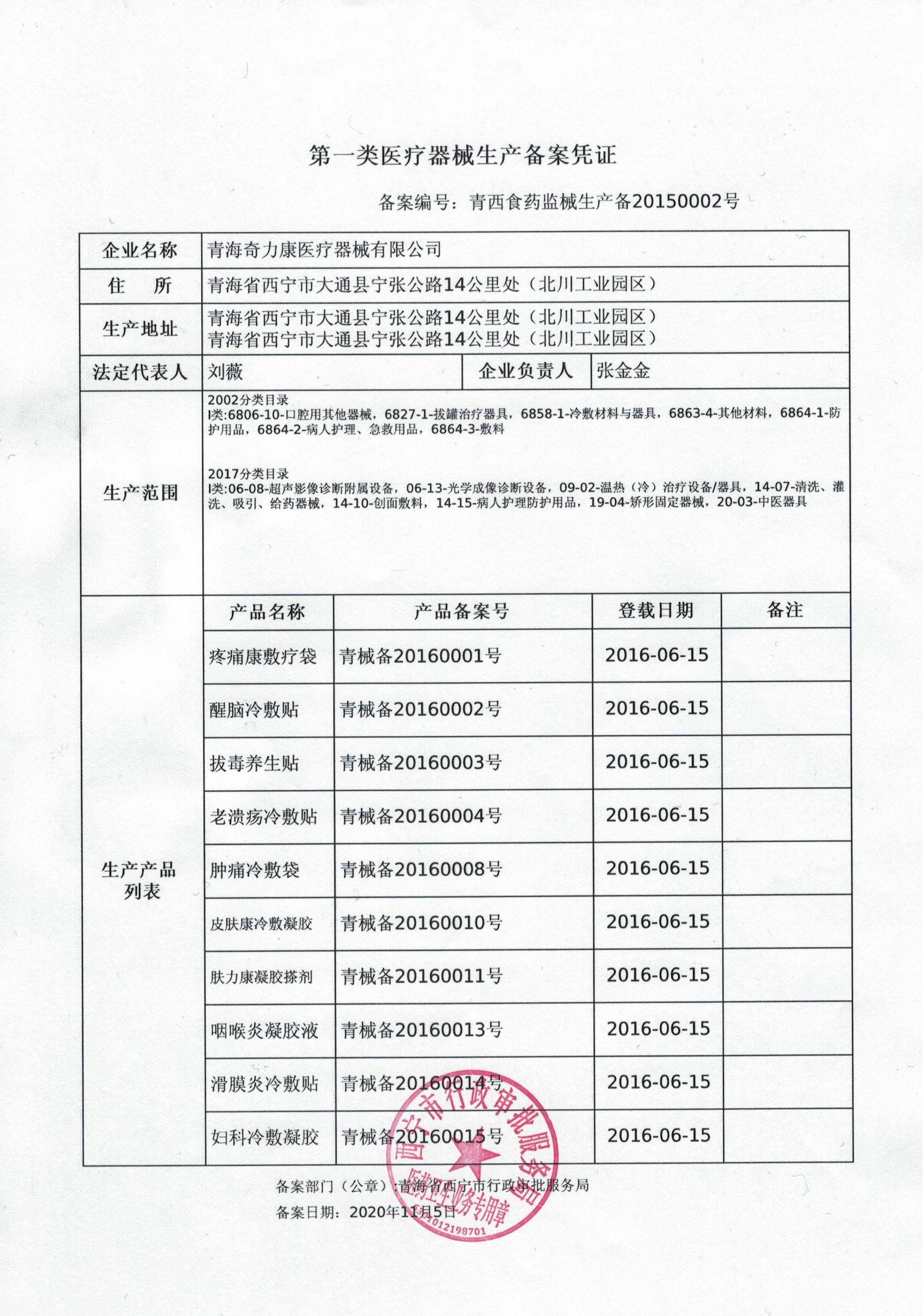 第一類醫(yī)療器械生產(chǎn)備案憑...